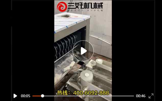數控饅頭機生產線是將面帶通過自動分割,整形機運輸,分割后送入主機二次壓片整形,卷成條胚,由刀切機構成型,制出成品,并使產品更加精確、光澤、有筋度,保持純手工的工藝及口味,更加節省人力。